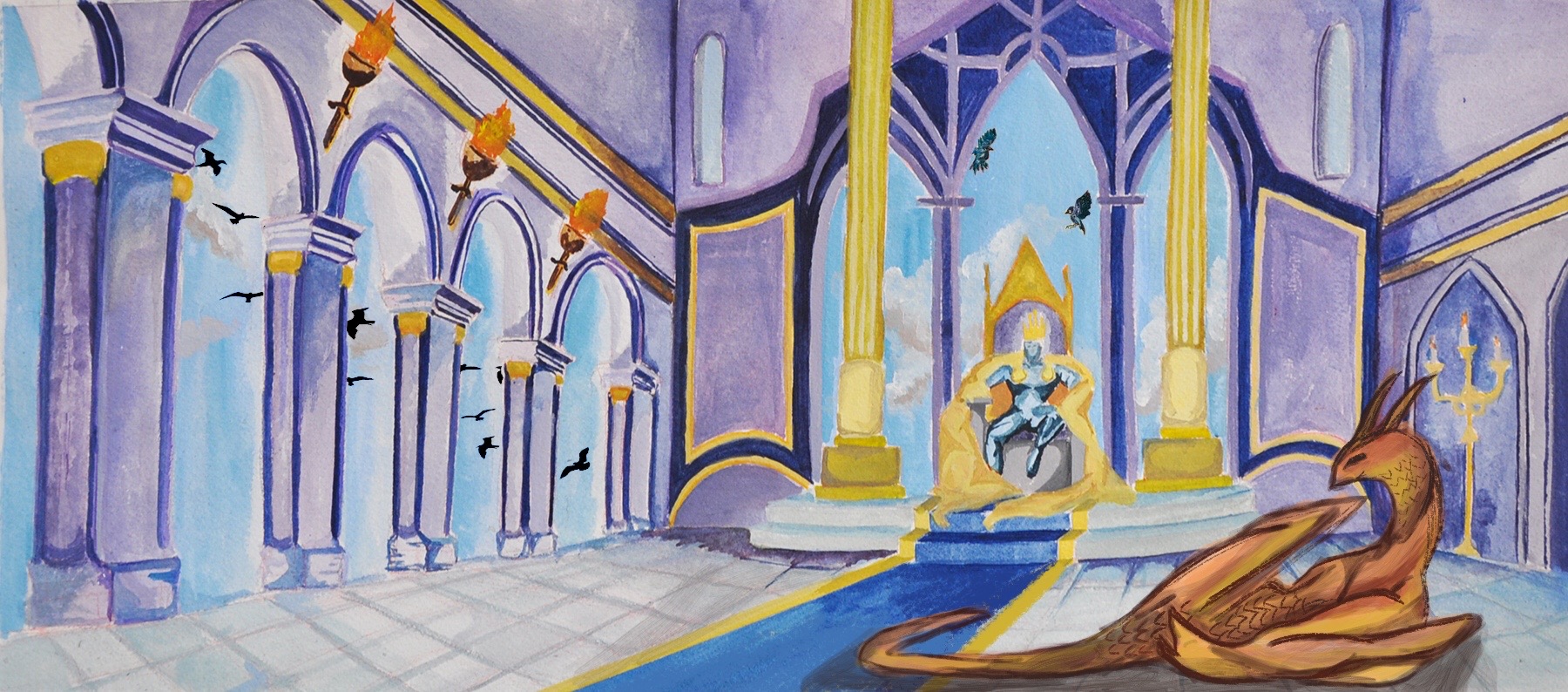 - Kingship, 2019. Gouache. 8x20.