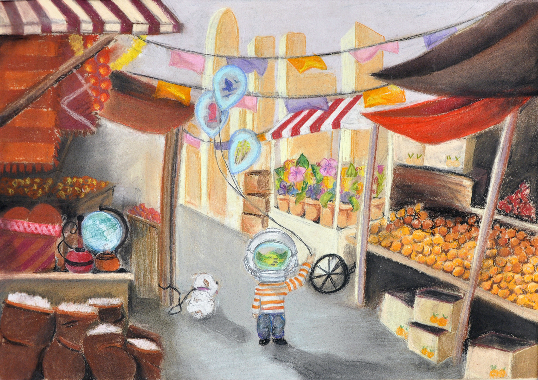 - Marketplace, 2019. Gouache. 16x20.