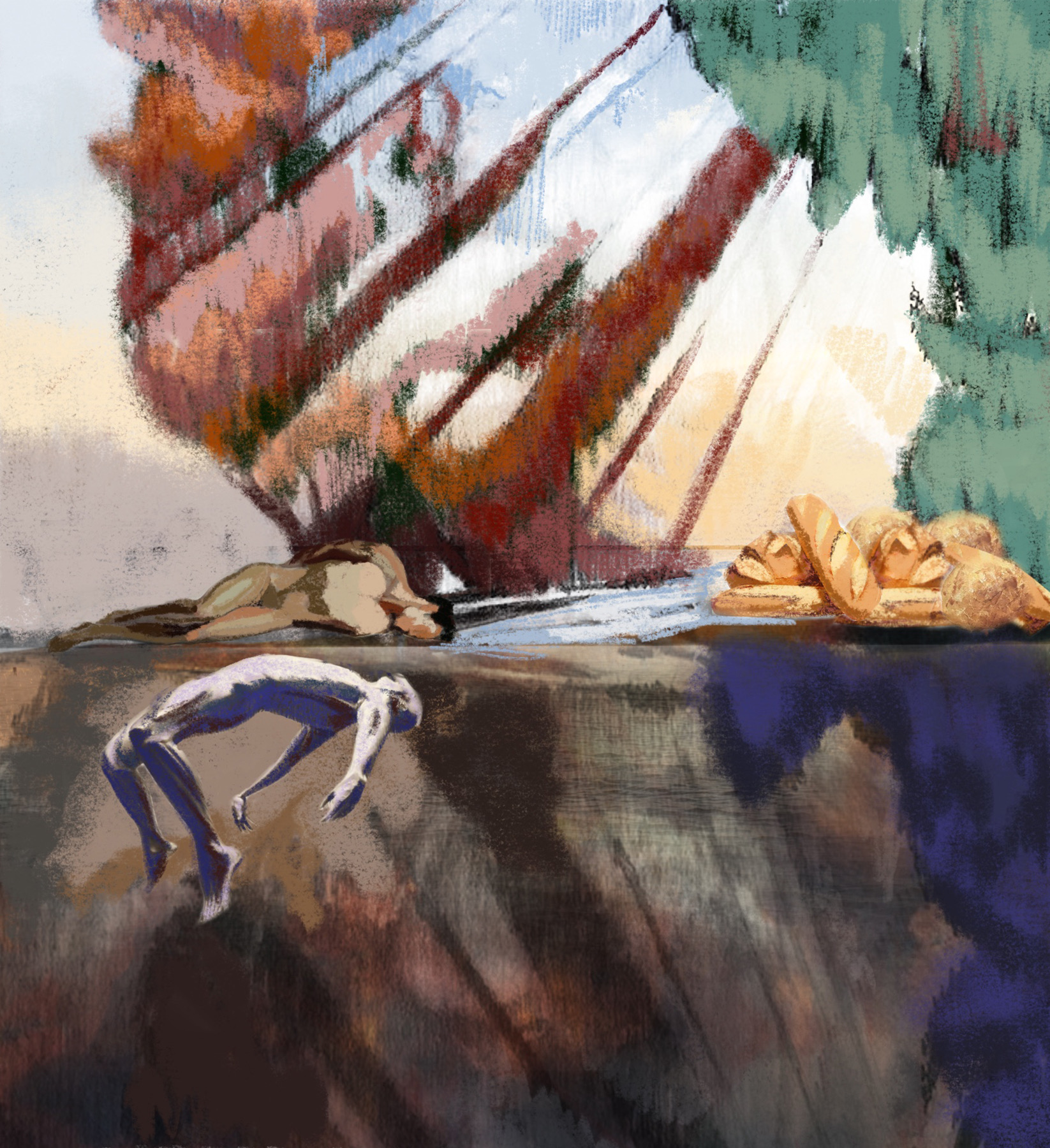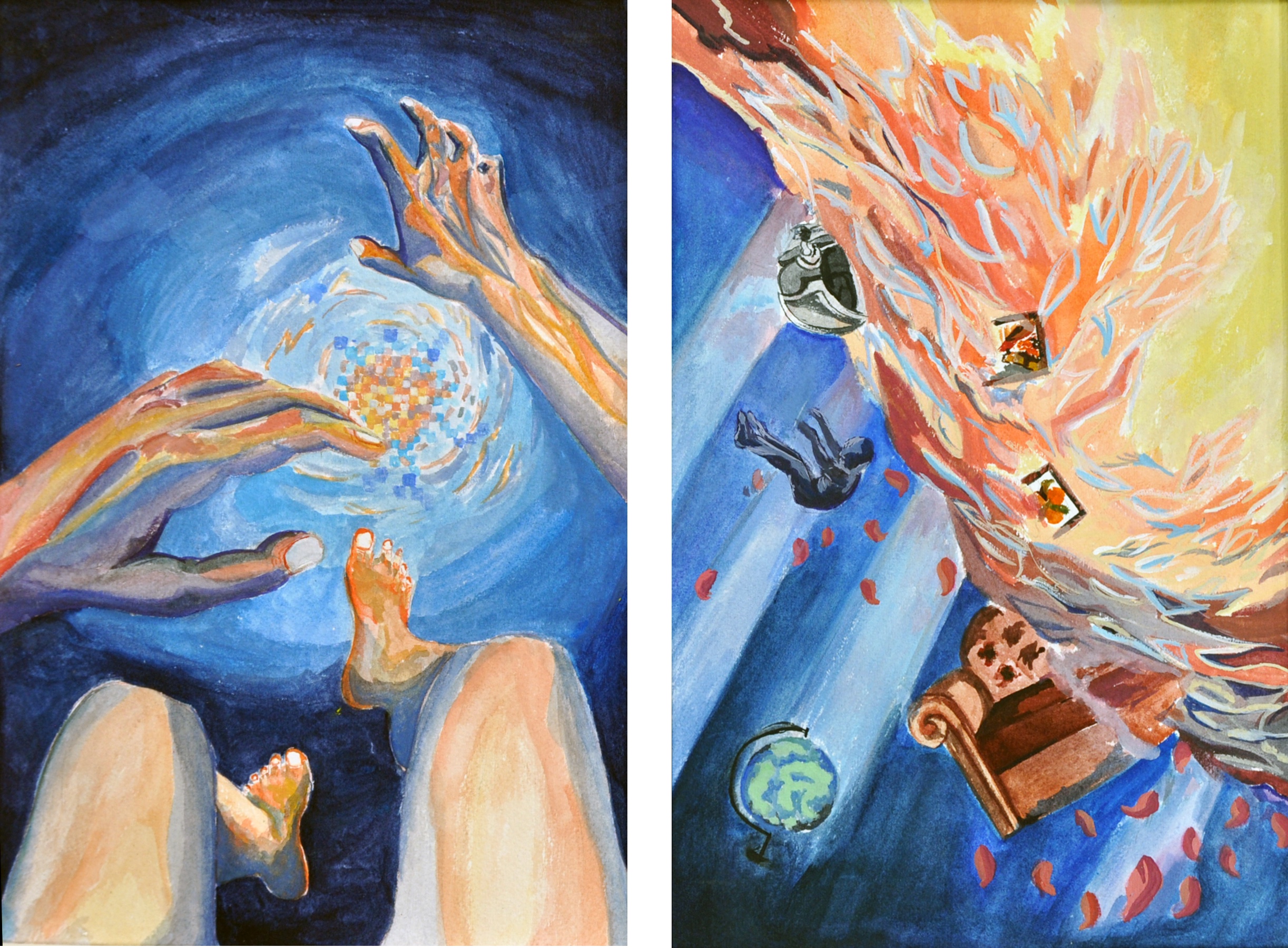 - Falling Up, 2019. Gouache. 12x16.